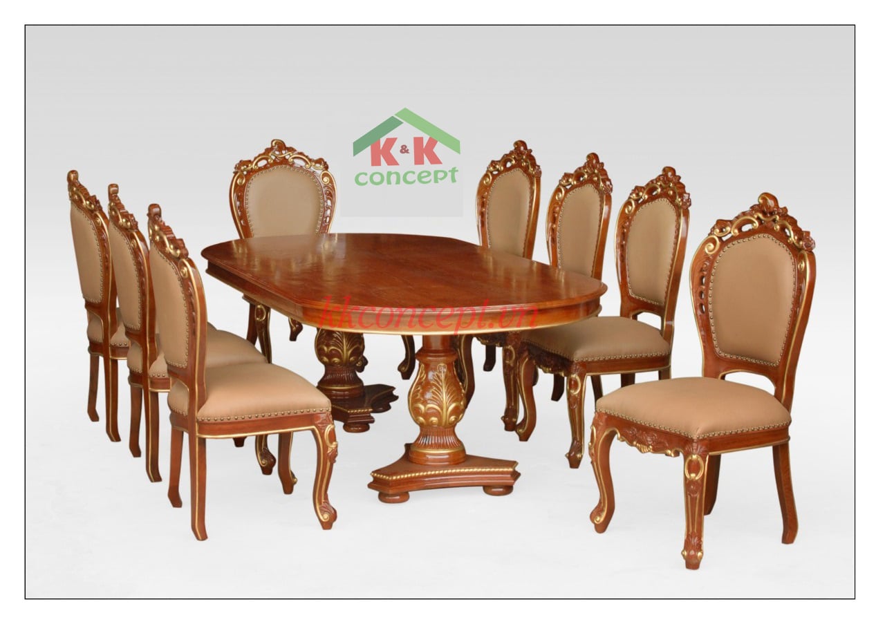 Chất liệu: Bàn ăn khung gỗ sồi dát vàng,
