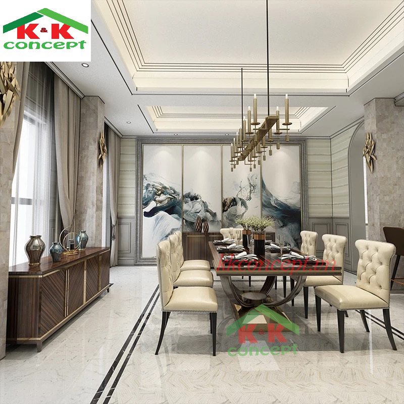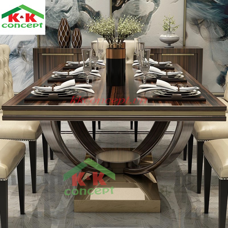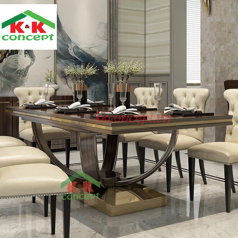 • Chất liệu: Bàn ăn khung inox, mặt gỗ sơn Piano