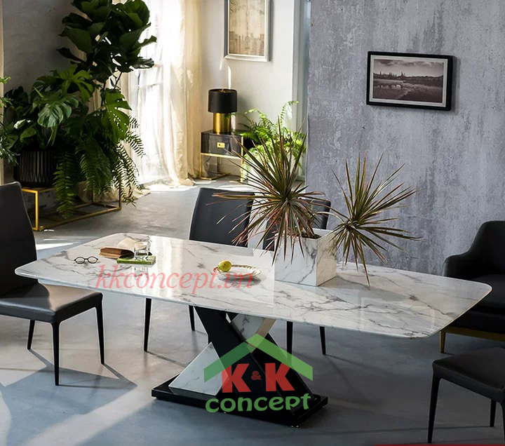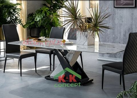 - Bàn ăn mặt đá marble, chân đá+thép phủ carbon