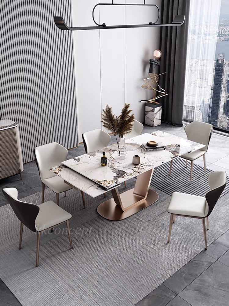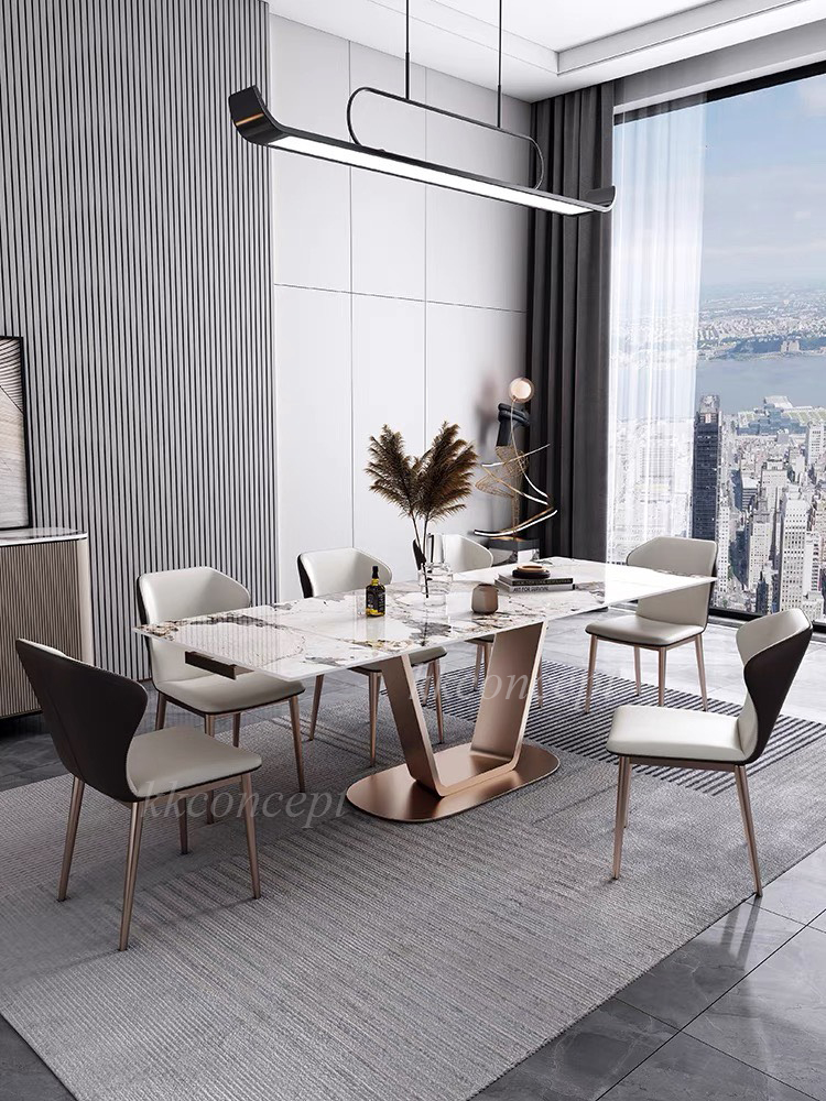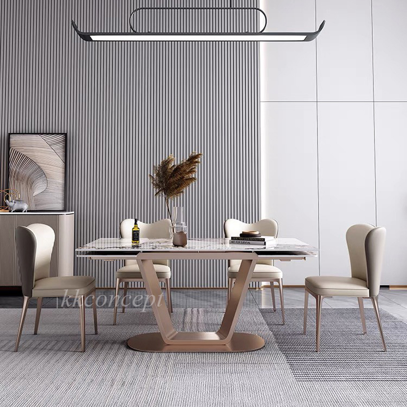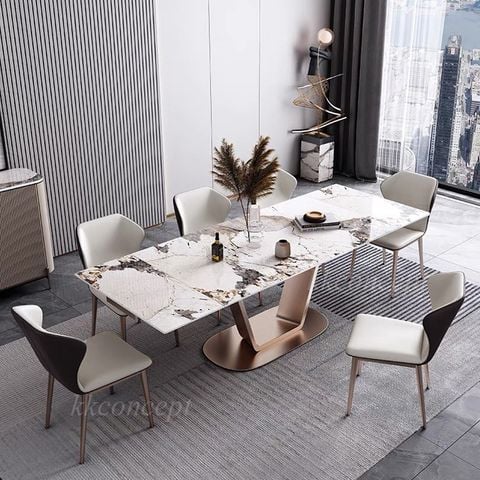 Bàn ăn mặt đá marble nhân tạo, khung inox mạ titan vàng BA0147 nhập khẩu cao cấp.