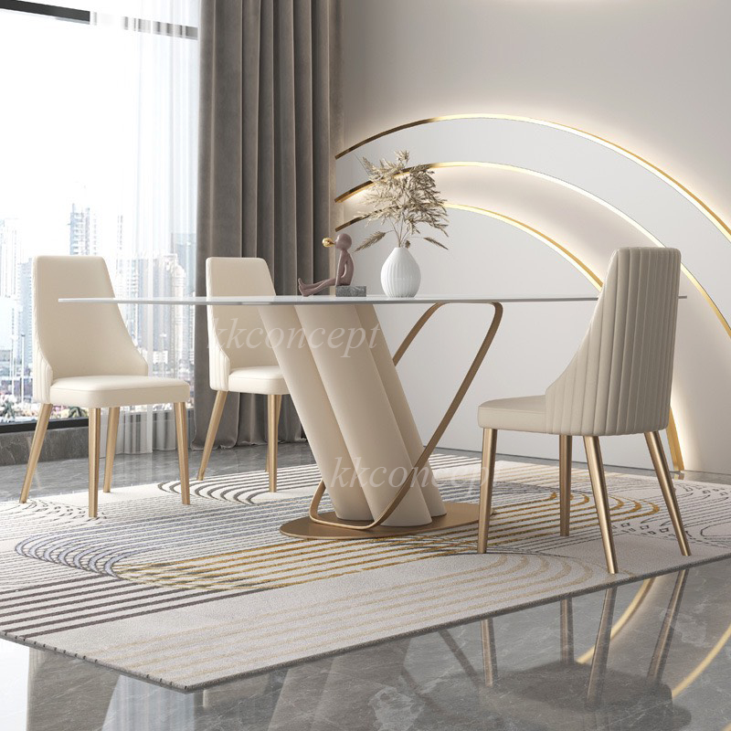 Bàn ăn mặt đá marble nhân tạo, khung inox mạ titan vàng BA0150 nhập khẩu cao cấp.