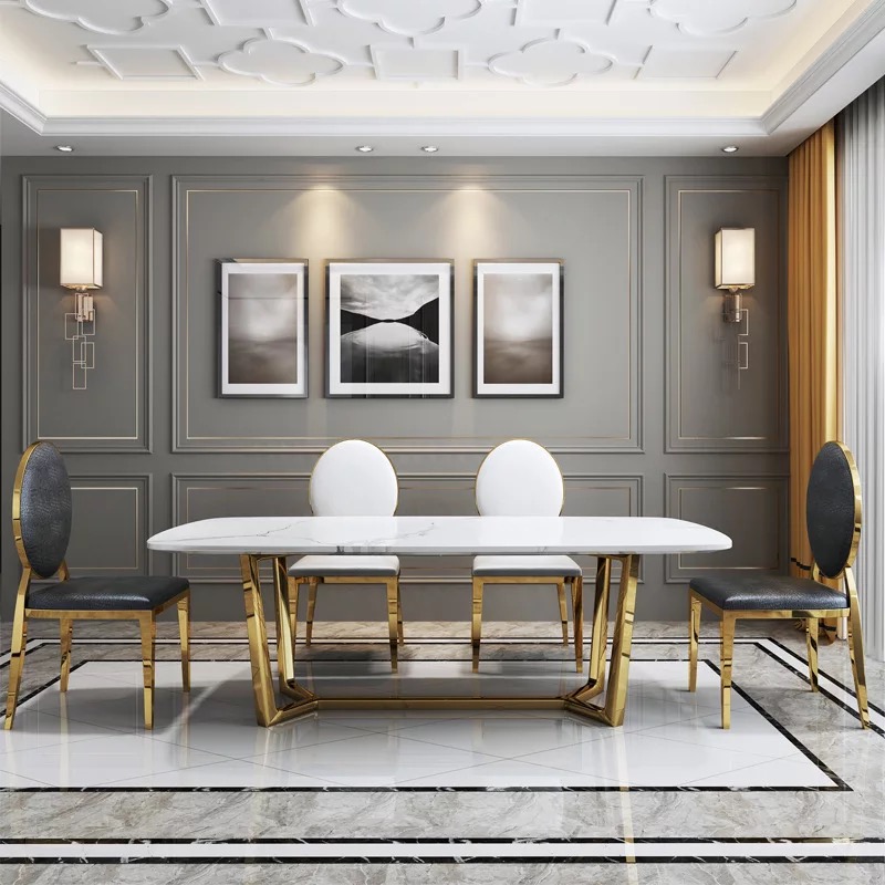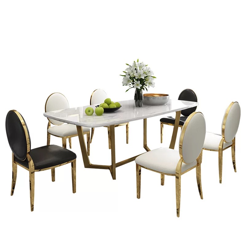 Bàn ăn mặt đá marble nhân tạo, khung inox mạ titan vàng BA033 nhập khẩu cao cấp
