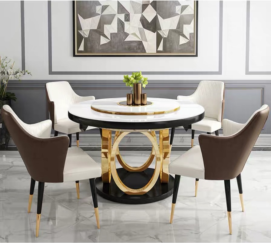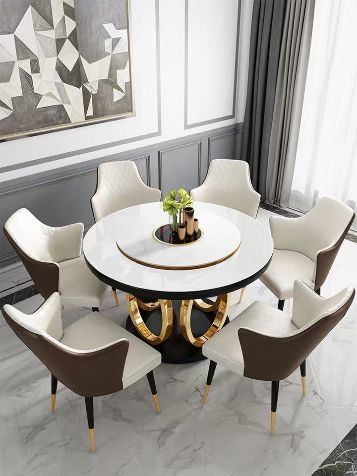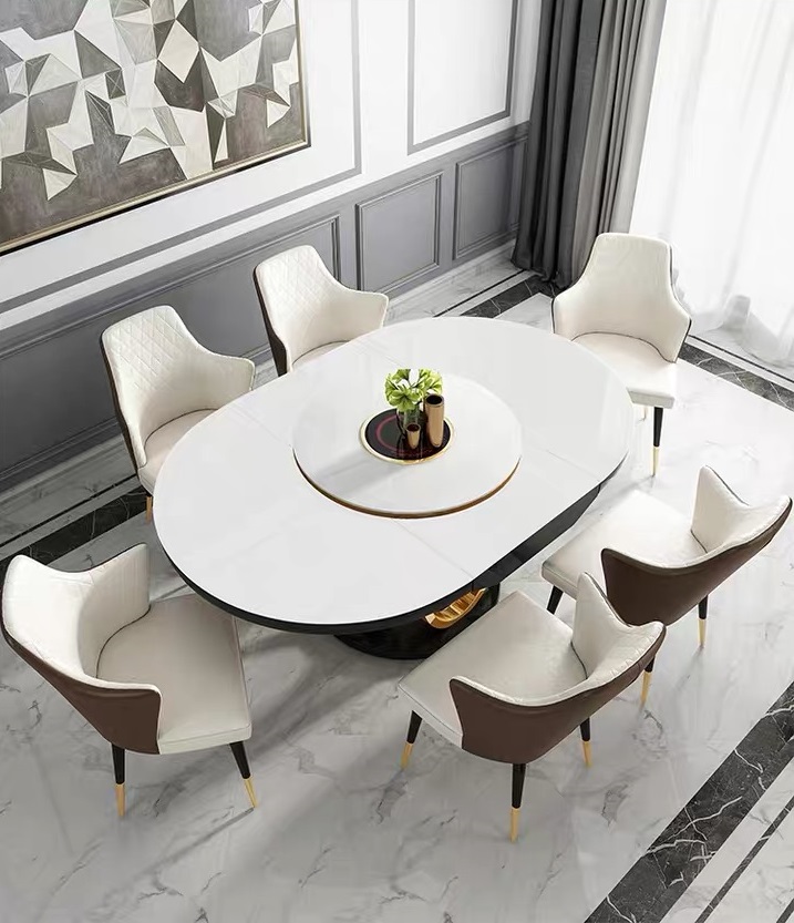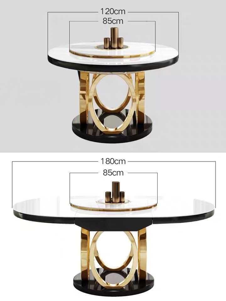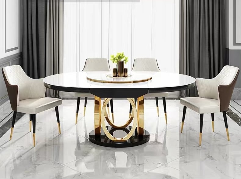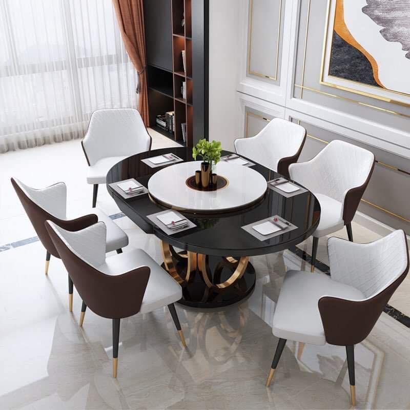 Bàn ăn thông minh Gỗ sơn, mặt kính cường lực, khung inox mạ titan vàng BA025 nhập khẩu cao cấp