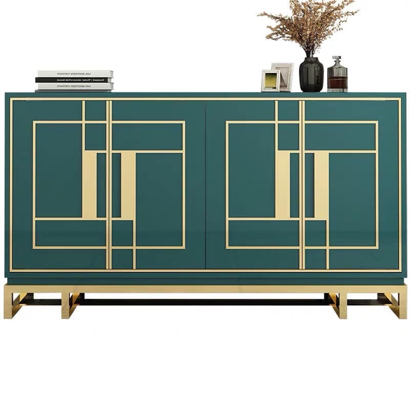 - Chất liệu : Gỗ sơn bóng, khung inox mạ titan vàng