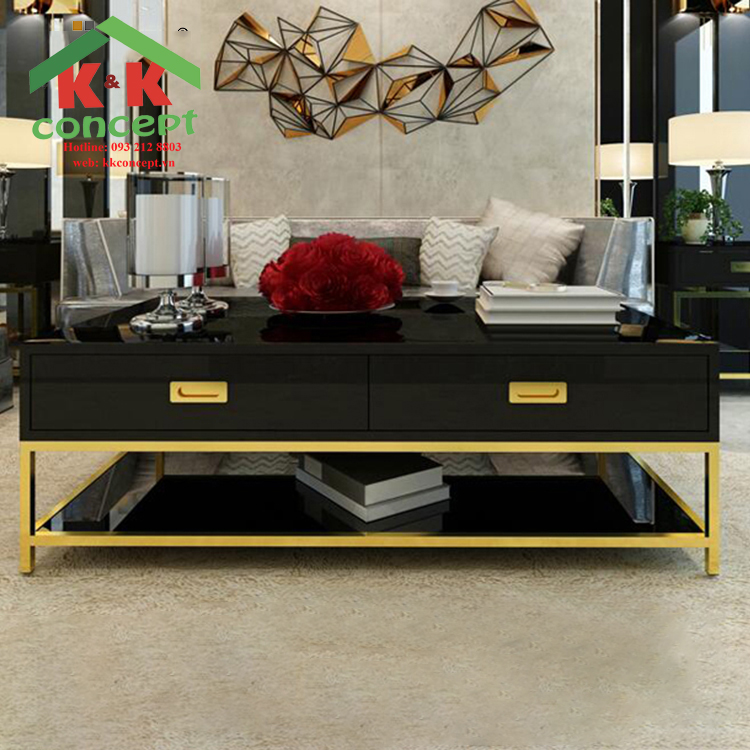 Các bàn trà inox mạ vàng sử dụng nhựng mặt đá, mặt kính cường lực, dễ dàng vệ sinh bụi bẩn, hay nước trà, rượu đổ trên mặt bàn không để lại vệt ố dơ.