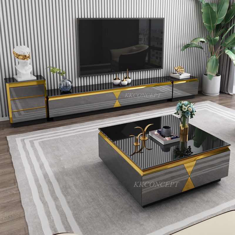 - Chất liệu : Gỗ công nghiệp, kính cường lực, inox mạ Titan
