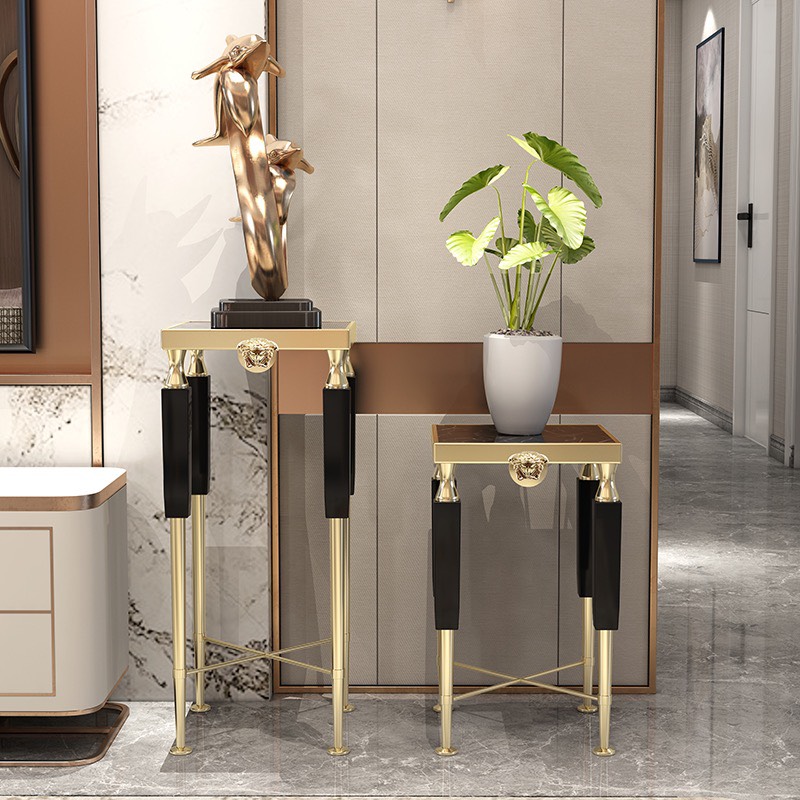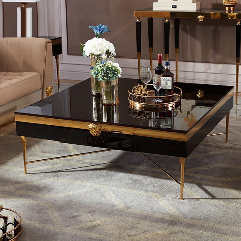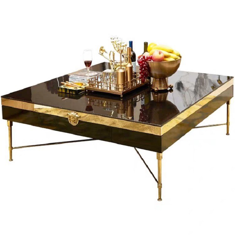- Chất liệu : mặt Kính cường lực/đá nhân tạo, khung gỗ sơn cao cấp, chân inox mạ titan vàng