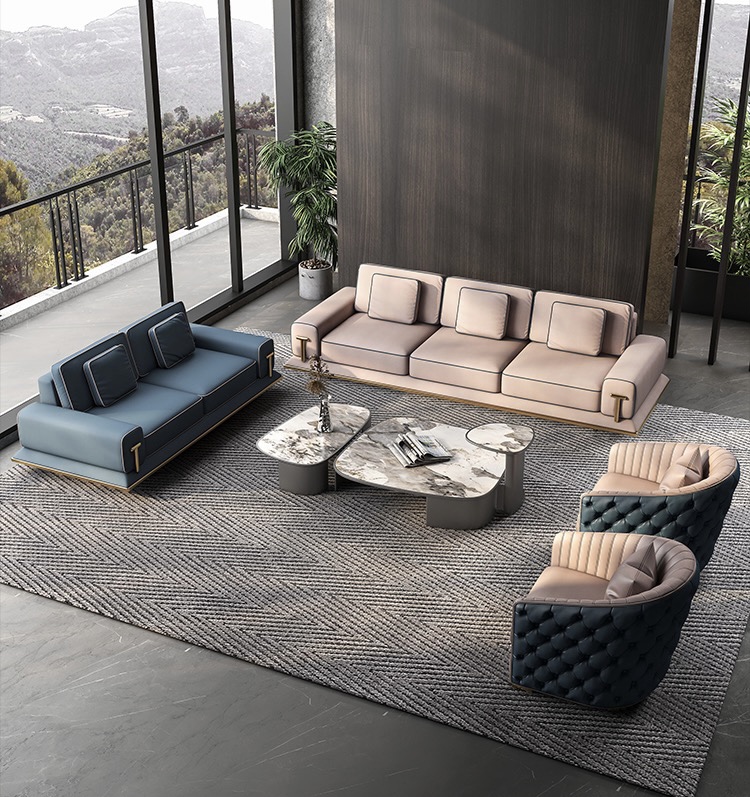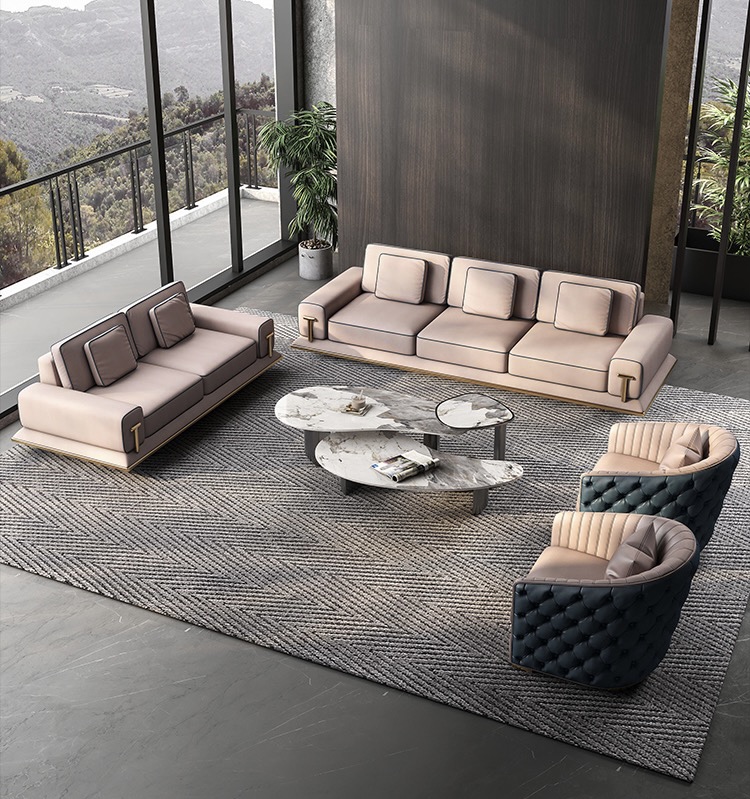 Bộ sofa da sang trọng phong cách kiểu italy nhẹ nhàng sang trọng cao cấp dành cho phòng khách cao cấp với chất liệu bằng da chân, viền inox mạ titan vàng, phong cách Ghế sofa Bentley sang trọng nhẹ của Ý.