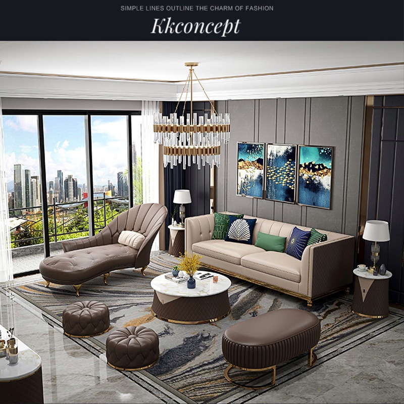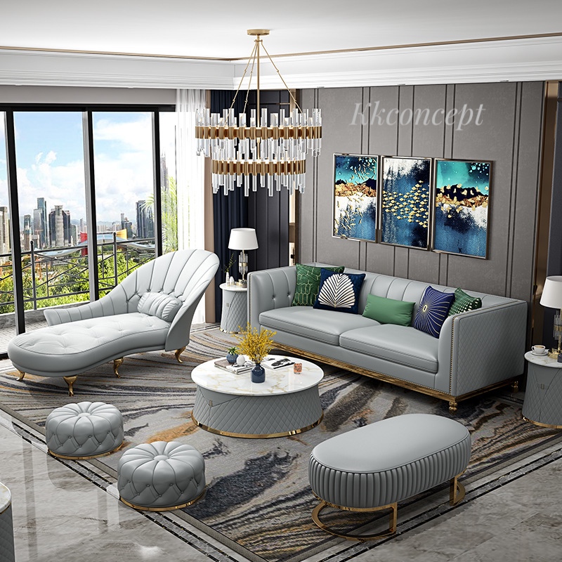 Bộ Sofa da khung viền inox mạ vàng cao cấp BSF117 cao cấp