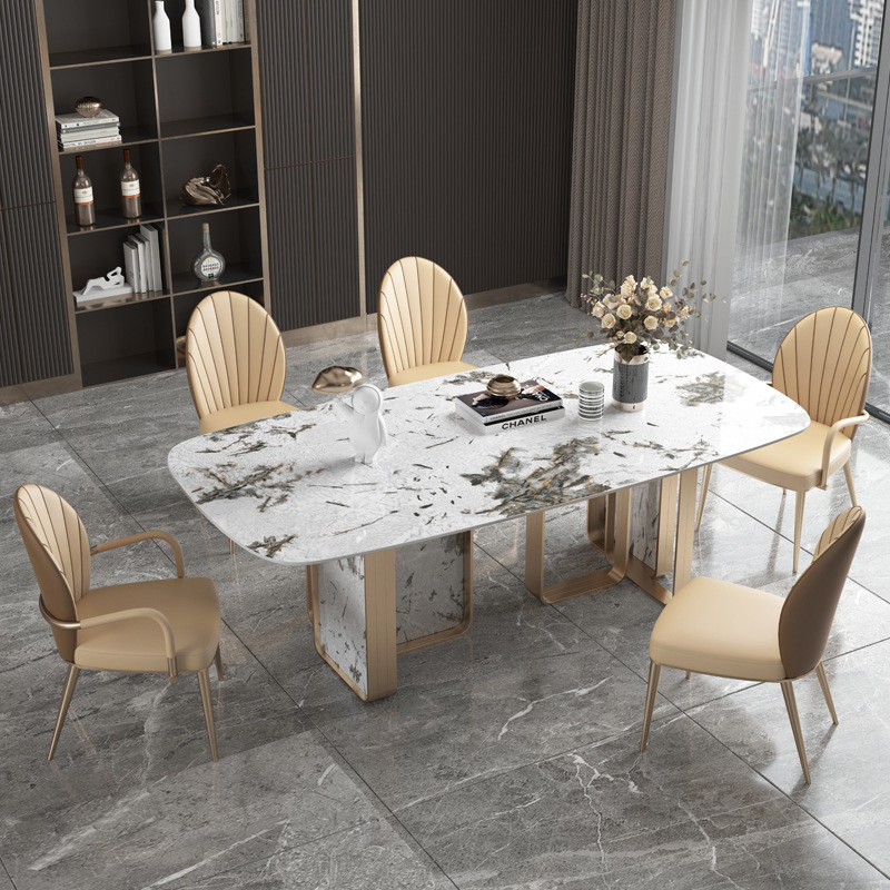- Chất liệu : Khung inox mạ titan vàng, Nệm bọc da công nghiệp