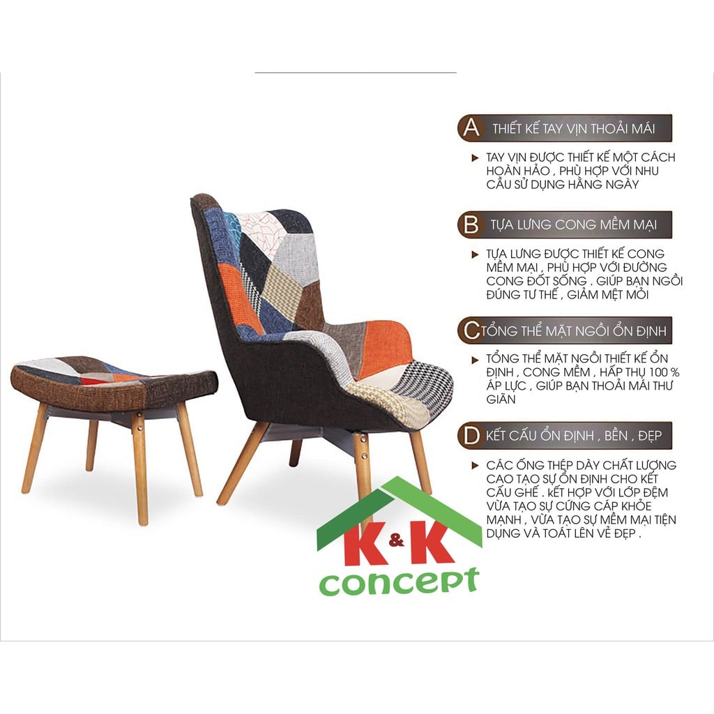 Vật liệu: Nhựa PP bọc vải thổ cẩm, chân gỗ