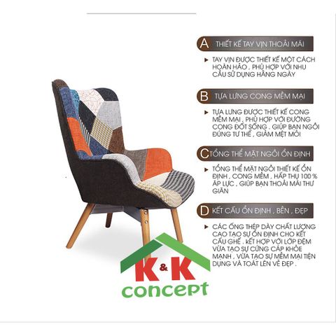 Vật liệu: Nhựa PP bọc vải thổ cẩm, chân gỗ