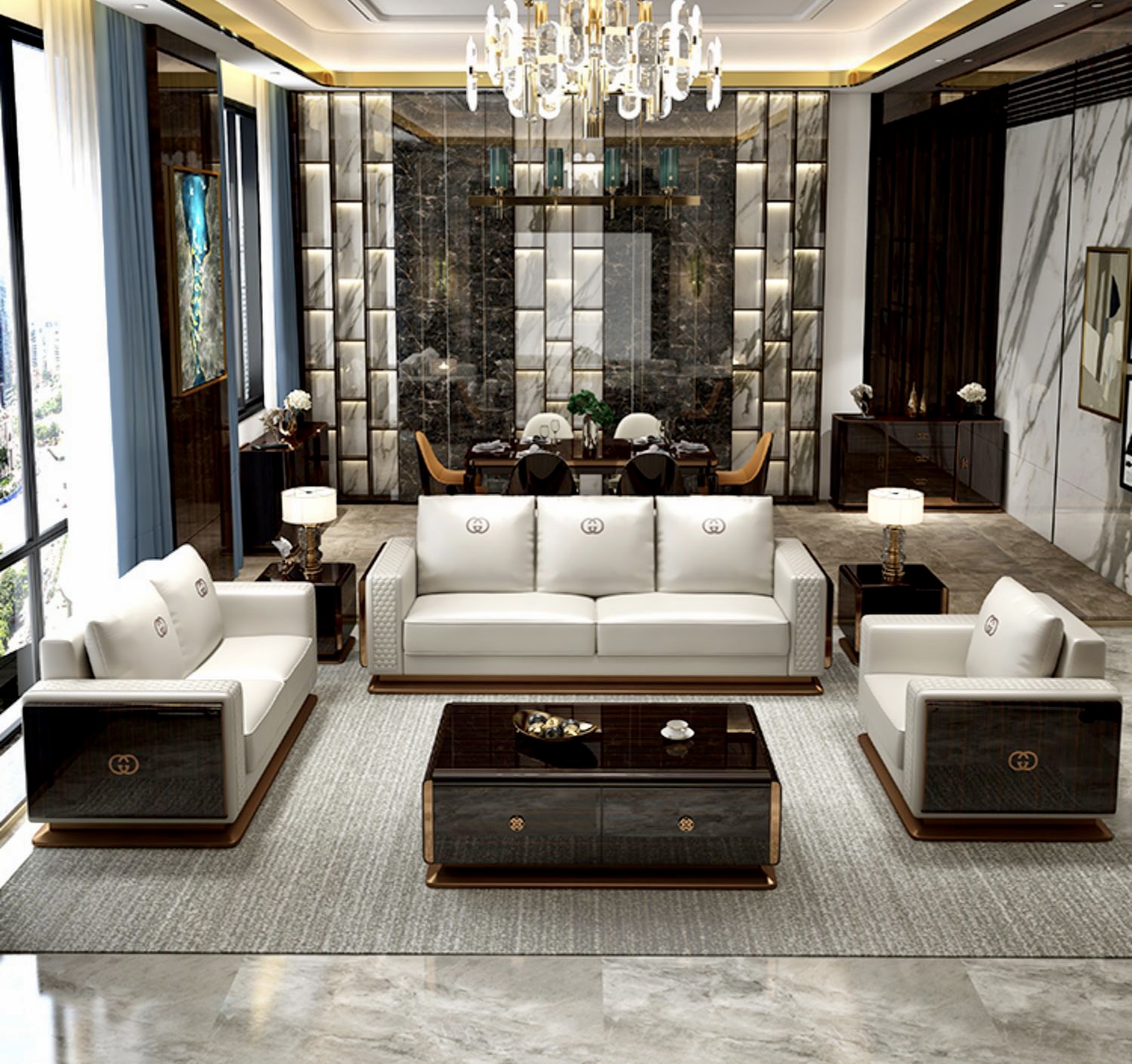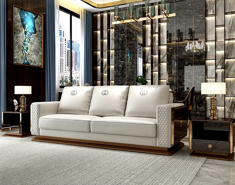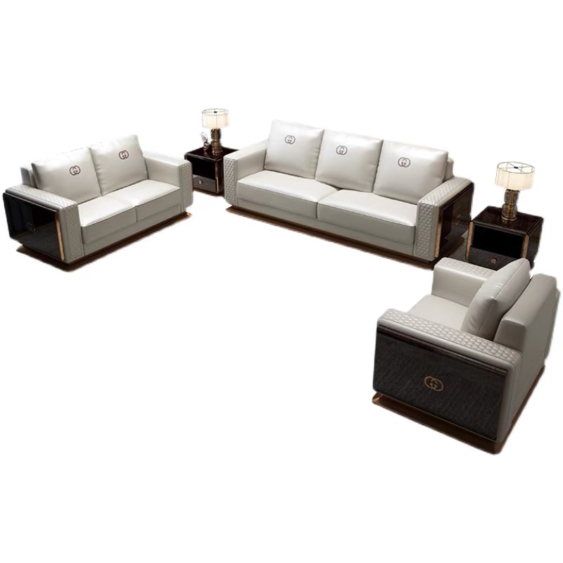 Ghế Sofa da màu kem, gỗ sơn piano cao cấp GSF169 nhập khẩu cao cấp