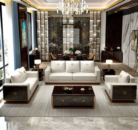 Sofa da sang trọng màu sáng phong cách Ý Sofa da