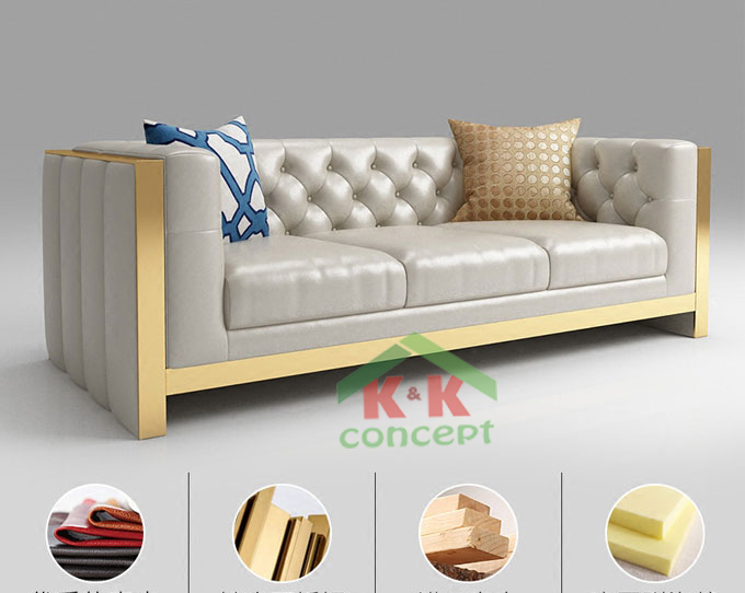 - Chất liệu : Da Microfiber, khung gỗ, chân inox mạ vàng