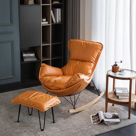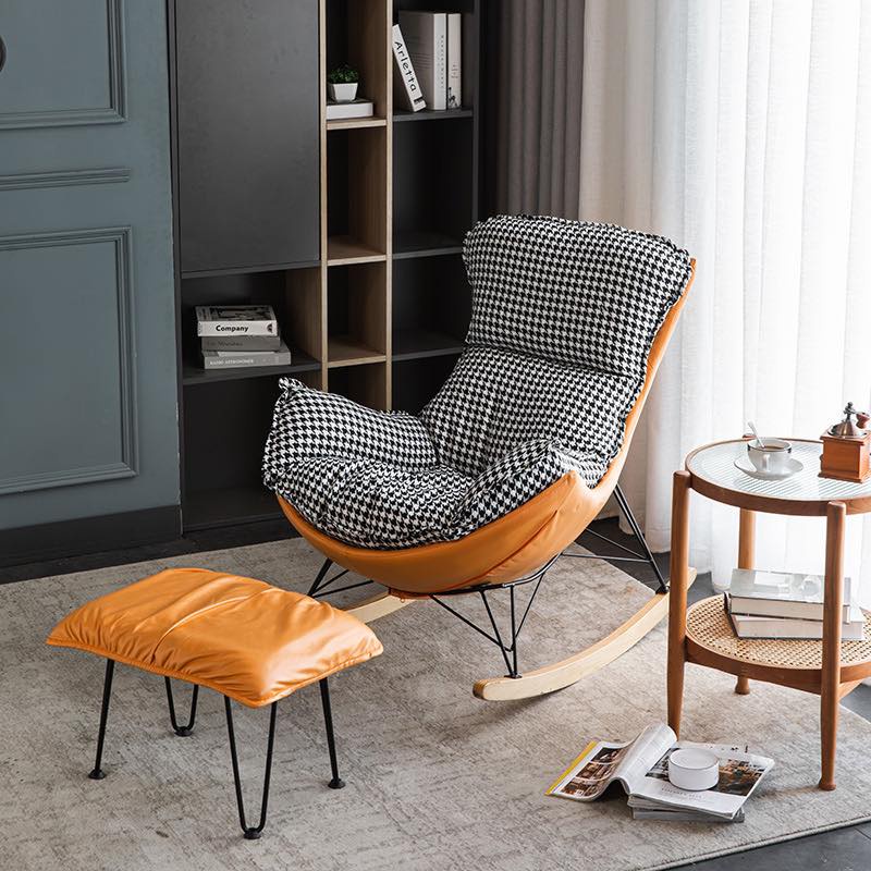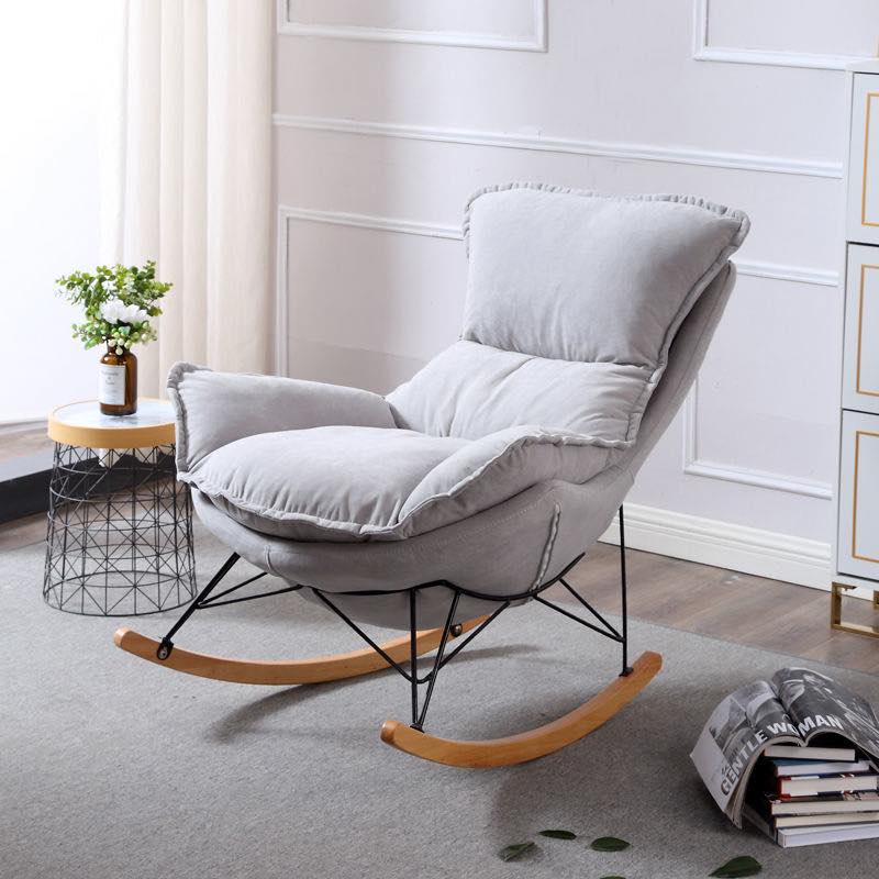 GHẾ THƯ GIÃN TG012 hiện đại mang điểm nhấn Bắc Âu, Ghế bằng vải Ghế xích đu chân gỗ và kim loại màu đen