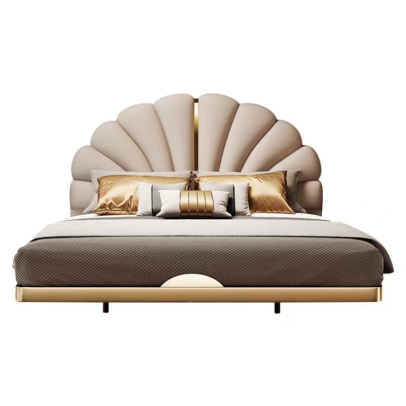 + Chất liệu: Khung inox mạ ttan vàng, Bọc da công nghiệp/ Da Bò tiếp xúc , Có đèn led gầm giường