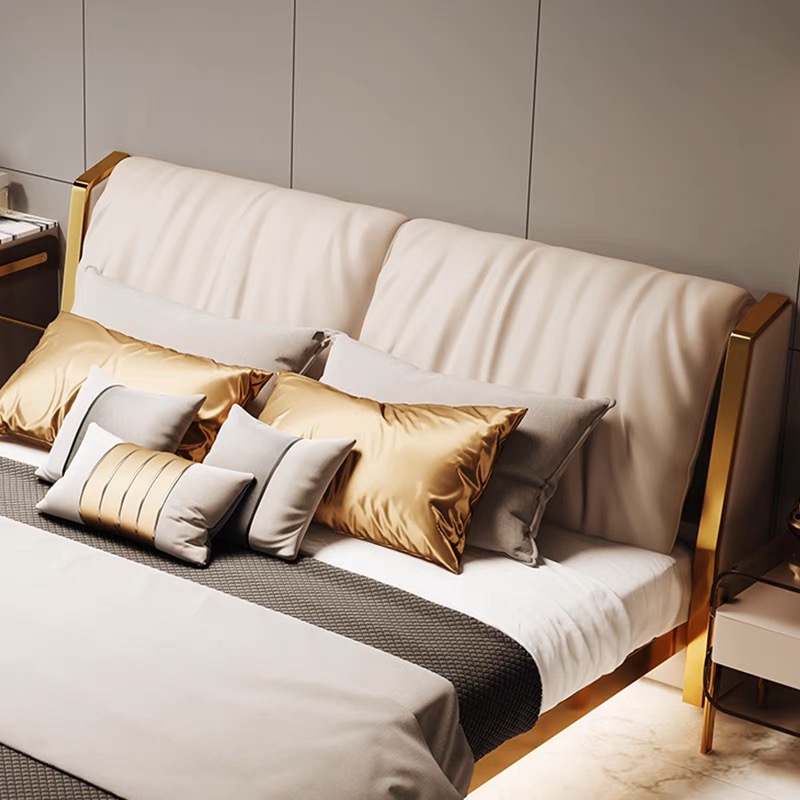 + Chất liệu: Khung inox mạ titan vàng, Bọc da công nghiệp/ Da Bò tiếp xúc , Có đèn led gầm giường